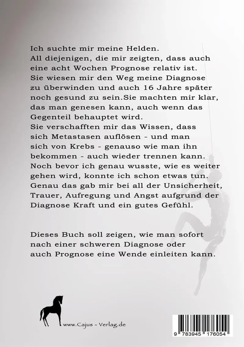 14 Jahre nach dieser Krebsdiagnose (2004) und nach jahrelanger Recherche entstand dieses Buch. Es beschäftigt sich auch mit der Frage: Warum habe ich überlebt - und andere nicht?